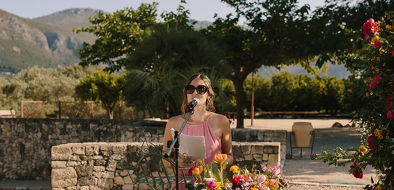 Tijdens een picknick aan het water toont Fien met veel trots haar verlovingsring. Zoals het goede vriendinnen betaamt, willen we alles horen. Hoe ging het aanzoek? Had ze het zien aankomen? Hoe voelde ze zich? Wanneer zouden ze gaan trouwen? Niet veel later volgt haar vraag: of ik ceremoniespreker zou willen zijn. Wat een eer. Natuurlijk wil ik dat. Wat en hoe dat zouden we samen uitdokteren. En voor ik het weet, zit ik me te verdiepen in ceremonies en best practices. Fien en Arthur mogen hun liefdesverhaal nog eens uit de doeken doen en ik peil bij vrienden en familie naar hun herinneringen met het koppel. En een dik jaar later is het zover. In Casa Benigalip krijg ik de eer om de liefde die Fien en Arthur samen delen onder woorden te brengen. Op hun manier. Samen met vrienden en familie. En zo had ik de smaak te pakken.